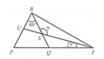 En la figura PR =QR, el ángulo PRQ mide 40° y el ángulo PTU mide 25°.